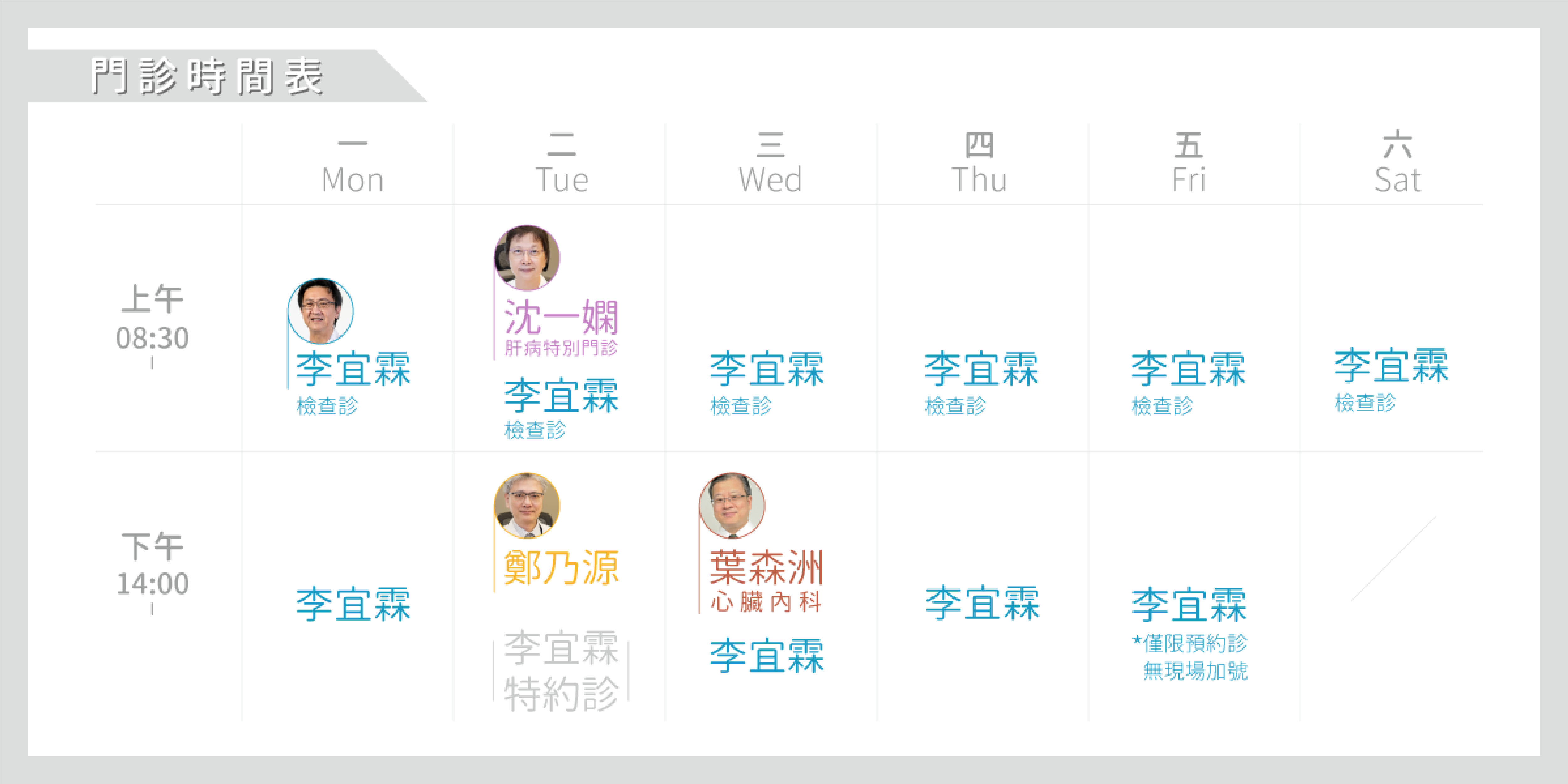 ◆李宜霖醫師星期五下午診僅接受預約掛號、恕無現場加號。